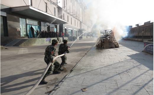 根據(jù)演練方案,上午9:30,在家美家居南廣場模擬三處火災(zāi)現(xiàn)場,巡查人員發(fā)現(xiàn)火情,立刻報(bào)告商場管理人員,工作人員和義務(wù)消防隊(duì)及時(shí)趕到現(xiàn)場,分三個(gè)小組用滅火器和消防水帶有效控制火情,并成功滅火。