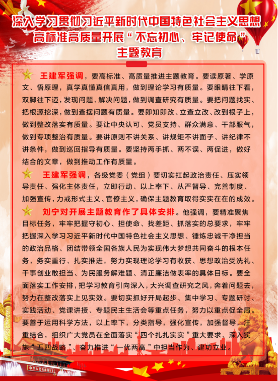由集團(tuán)黨委副書記、總經(jīng)理劉玲同志宣讀《集團(tuán)黨委開展"不忘初心、牢記使命"主題教育實(shí)施方案》。集團(tuán)黨委書記、董事長王玉輝同志作了"不忘初心、牢記使命"主題教育動(dòng)員講話,對集團(tuán)系統(tǒng)開展主題教育工作進(jìn)行了安排部署,要求把主題教育與完成本單位轉(zhuǎn)型升級、項(xiàng)目建設(shè)、生產(chǎn)經(jīng)營等工作任務(wù)結(jié)合起來,切實(shí)把主題教育成果轉(zhuǎn)化為企業(yè)發(fā)展的強(qiáng)大動(dòng)力,推動(dòng)青海物產(chǎn)高質(zhì)量發(fā)展。省委"不忘初心、牢記使命"主題教育第十二巡回指導(dǎo)組組長任正德同志做了指導(dǎo)講話。充分肯定了集團(tuán)黨委的前期工作,認(rèn)為會(huì)議準(zhǔn)備比較充分,有效統(tǒng)一了干部職工的思想,制定的主題教育《實(shí)施方案》操作性強(qiáng),目標(biāo)任務(wù)具體,動(dòng)員講話政治站位高,思想認(rèn)識深,工作思路清晰。同時(shí),結(jié)合工作組的職責(zé)就落實(shí)主題教育各項(xiàng)任務(wù)講了六點(diǎn)意見。一是聚焦根本任務(wù);二是把握"十二"字總要求;三是緊扣"五句話"總目標(biāo);四是落實(shí)"四個(gè)貫穿";五是抓實(shí)"六項(xiàng)重點(diǎn)"舉措;六是力戒形式主義,嚴(yán)禁主題教育走形式、走過場。
