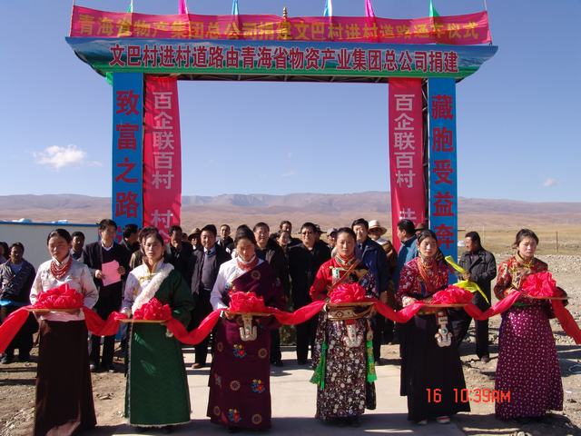 2011年10月16日,集團總公司在共和縣江西溝鄉(xiāng)元者村舉行"百企聯(lián)百村"捐建共和縣江西溝鄉(xiāng)元者村黨員活動室、科普文化室、醫(yī)療衛(wèi)生室和黑馬河鄉(xiāng)文巴村進村道路工程項目交接儀式。集團公司總經(jīng)理王玉輝、黨委書記白家林、紀委書記王仁芬、共和縣人大常委會主任尕瑪才讓、共和縣委常委、組織部長官卻南見以及集團"百企聯(lián)百村"活動領(lǐng)導(dǎo)小組成員、總部全體職工、捐建工程項目部工作人員、施工方代表和有關(guān)縣、鄉(xiāng)、村領(lǐng)導(dǎo)、村民代表60余人參加交接儀式。