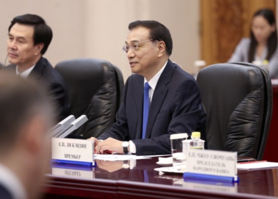 李克強總理會見哈薩克斯坦總統(tǒng)納扎爾巴耶夫談到當前國際經(jīng)濟形勢時表示:"經(jīng)濟安全對一個國家來說是基本安全,因為人民需要過上好日子。"