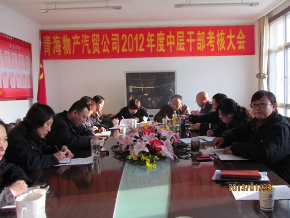 2013年1月28日,青海物產(chǎn)汽貿(mào)公司召開了2012年度中層干部考評會議,公司領(lǐng)導(dǎo),各部、海東分公司負(fù)責(zé)人,公司中層副職和重點崗位、骨干員工代表共28人參加了會議。會議由黨支部書記黃曉梅主持,總經(jīng)理張宏民做了重要講話。