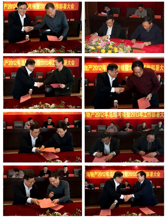 會(huì)上,由集團(tuán)總經(jīng)理王玉輝與所屬各公司、集團(tuán)各部簽訂2013年經(jīng)營(yíng)業(yè)績(jī)目標(biāo)責(zé)任書,由集團(tuán)黨委書記白家林與所屬黨委(總支)、直屬黨支部簽訂黨建工作目標(biāo)管理責(zé)任書、與所屬各公司法定代表人簽訂黨風(fēng)廉政建設(shè)責(zé)任書。
