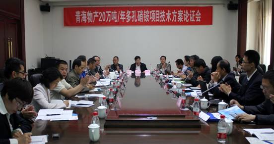青海物產(chǎn)工業(yè)投資有限公司20萬噸/年多孔硝銨項目技術(shù)方案論證會于2013年5月17日-19日在青海西寧召開,省物產(chǎn)集團(tuán)總公司總經(jīng)理王玉輝、副總經(jīng)理耿保平、北川工業(yè)園管委會副主任薛萬革、建行西寧支行副行長王硯宏蒞臨會議指導(dǎo),會議由物產(chǎn)工投常務(wù)副總經(jīng)理常海寧和專家委員會主任分別主持。煙臺萬華高級工程師王全文、山西天脊高級工程師劉金亮、湖北鐘祥凱龍高級工程師楊國富、華陸工程科技有限公司教授級高工劉艷軍、陜西興化工程師馮衛(wèi)、物產(chǎn)民爆總經(jīng)理袁海玲、物產(chǎn)工投高級工程師薛玉貴、華陸工程科技有限公司副總經(jīng)理齊吟、賽鼎工程有限公司商務(wù)部副主任劉軍彪及相關(guān)主設(shè)人員、項目建設(shè)單位代表等共36人參加了會議。專家委員會推選楊國富擔(dān)任主任委員、袁海玲擔(dān)任副主任委員。